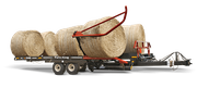 *Model: 1450 ~ Capacity: GVW: 18,720 lb (8,491 kg) , Eight - 4' (1.2 m) wide bales , Seven - 5' (1.5 m) wide bales ~ Tractor: 60 hp (45 kW) at 12,480 lb (5,660 kg) ,Maximum recommended speed when loaded is 20 mph (32 km/hr) ~ Deck length: 37' ~ Overall length: 44' ~ Transport width: 8.5' ~ Weight: 5495 lbs.